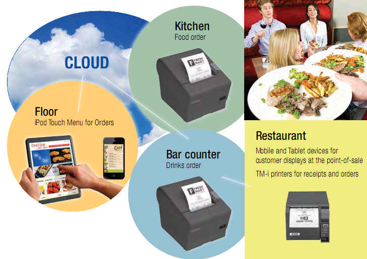 Using a unique built-in intelligence called ePOS-Print, the TM-i series are able to receive XML commands from web applications in addition to communicating directly with HTML 5 browsers. This makes the TM-i series printers ideal for restaurants, hotels and bars using tablet PCs or mobile phones for ordering. These printers can also control cash drawers, as well as additional printers with a wired or wireless UIB interface, such as order-driving kitchen printers. Additionally, users can switch between applications without changing printer settings, and are also able to configure the printer from these mobile devices.