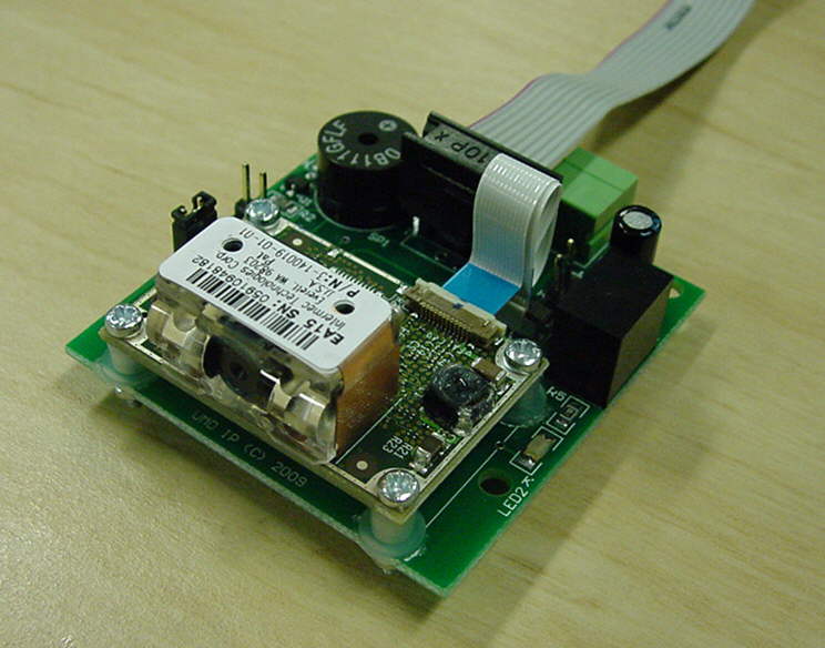 The MP2100 allows the Barcode Engine to be mounted horizontally and provides either a 6 way screw terminal block, dual 10 way header pins or an RJ socket for connection, with power provided either through the connected cable or on a separate screw terminal connection.