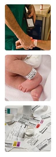 Effective patient care is predicated on accuracy, but human error is exceptionally difficult to eliminate in the inherently high-touch medical environment. To address this, barcodes and automatic ID technologies are being used increasingly across a wide range of medical practices. Patient wristbands are one common application area. Intermec patient wristbands ensure positive identification for integration with verification systems for medication, samples, and surgical procedures. The five rights of medication safety (right patient, right drug, right time, right dose, right route) provide an important framework for verification of pharmaceutical administration, but commonly rely on manual human checks. Integration of positive patient ID with barcode wristbands provides a highly reliable adjunct to eliminate human error. With increasing implementation of patient electronic medical record (EMR), scanning the wristband can trigger caregiver notification of allergies or other special requirements. Intermec INband wristbands provide the positive identification hospitals need for maximum patient safety. Excellent print quality ensures both standard and 2D bar codes will be scanned accurately. Durable topcoating provides high resistance to soaps, hand sanitizers, moisture, and other conditions commonly encountered in the hospital environment. Flexible and lightweight, the Intermec band is easy to apply, minimizing the curl that may be experienced with other products. High tensile strength film and a high-shear adhesive closure securely affix the band in place for the duration of the patient stay. A robust tamper-evident closure feature protects the integrity of the patient identification system. Direct thermal technology delivers mission-critical printing system reliability, while providing straightforward compliance with regulations for security of patient information. Simple, intuitive printer loading and one-at-a-time printing allows bands to be generated with minimal waste. Designed to accommodate a wide range of needs, Intermec INband configurations are available to identify patients from newborns to adults. With safety and quality of care depending on accurate patient identification, wristband system components must work together flawlessly. Intermec printers and media are optimized to deliver superior performance when used together. Our rigorous testing and co-engineering ensures consistently high print quality, proven performance in demanding real-world environments, and maximum print head service life for reduced downtime. Benefits: